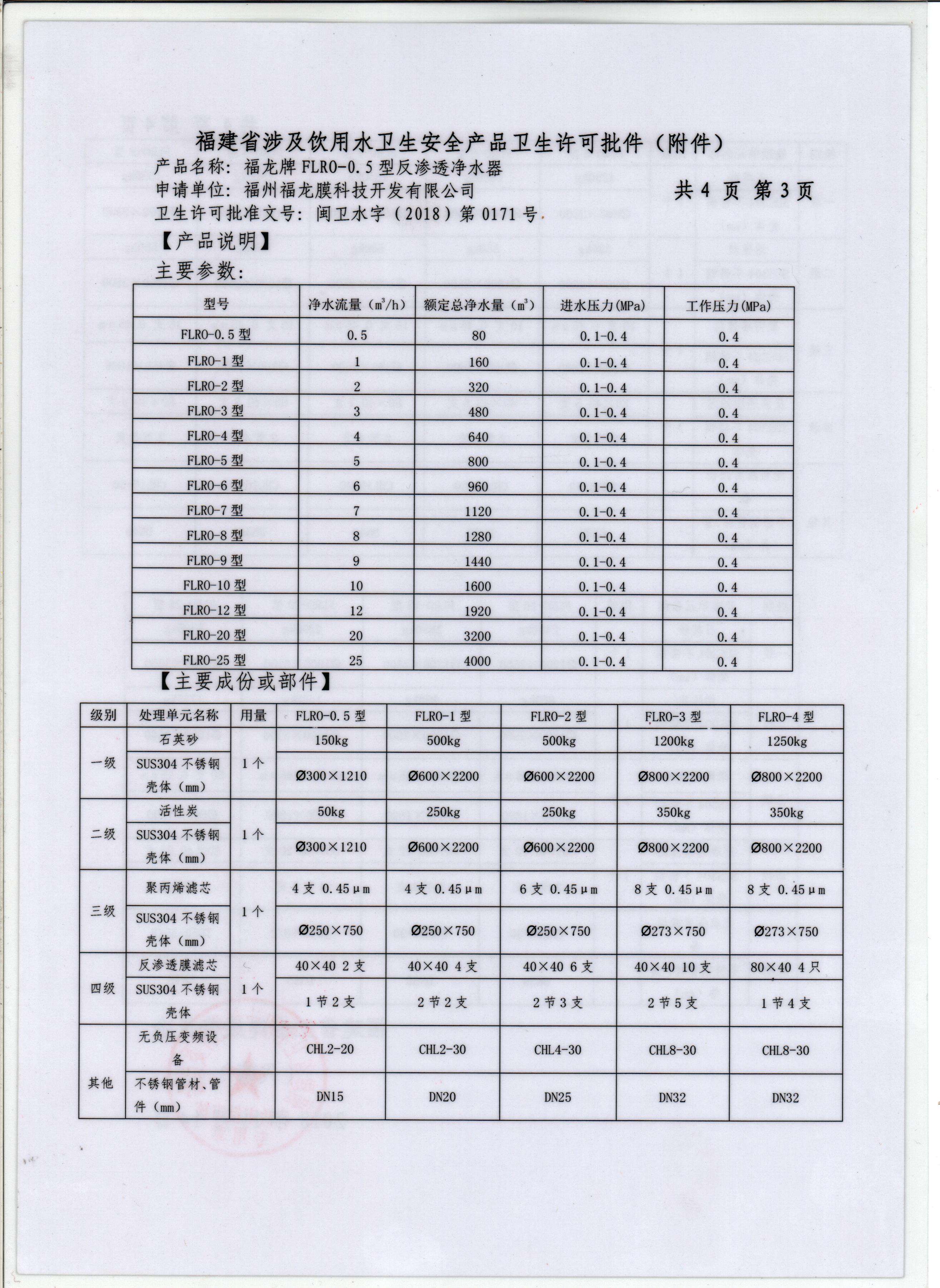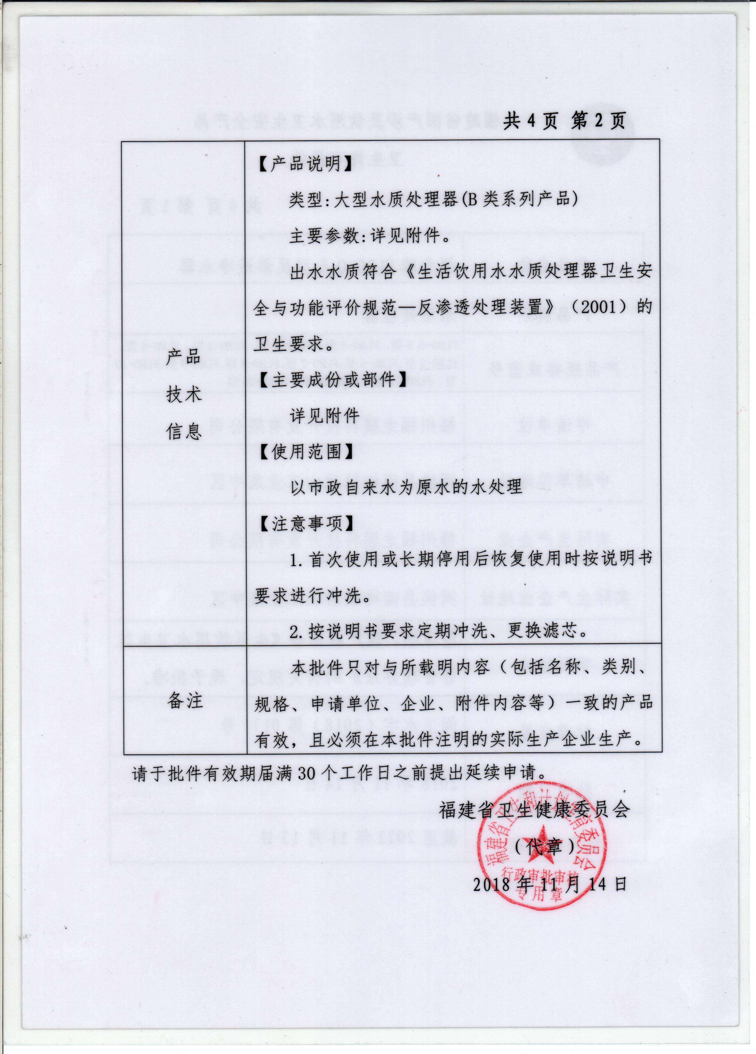 反渗透净水器卫生许可批件